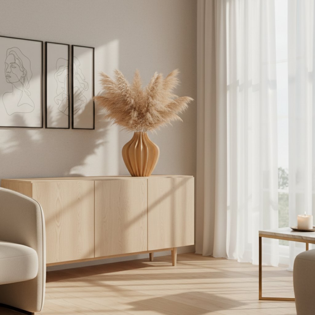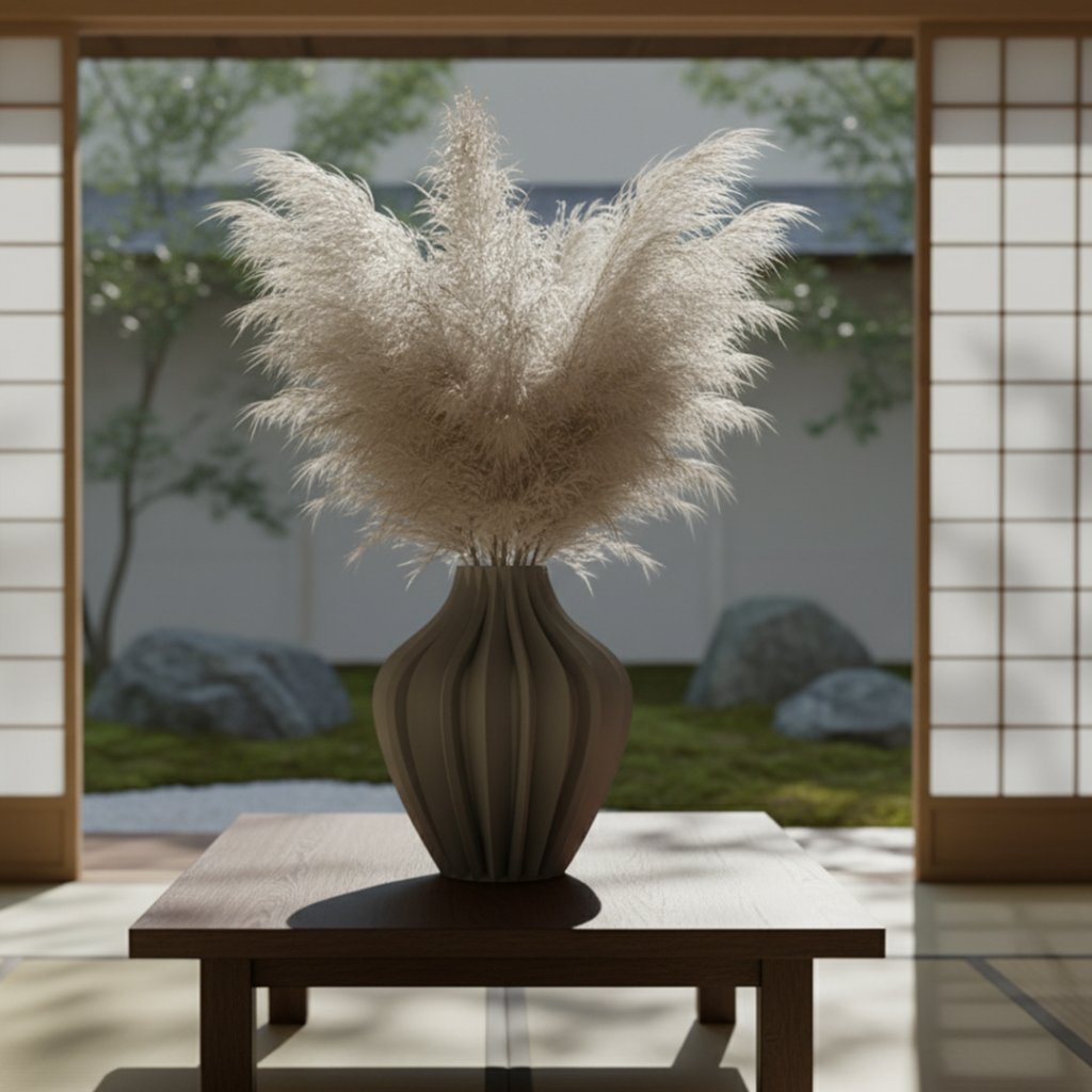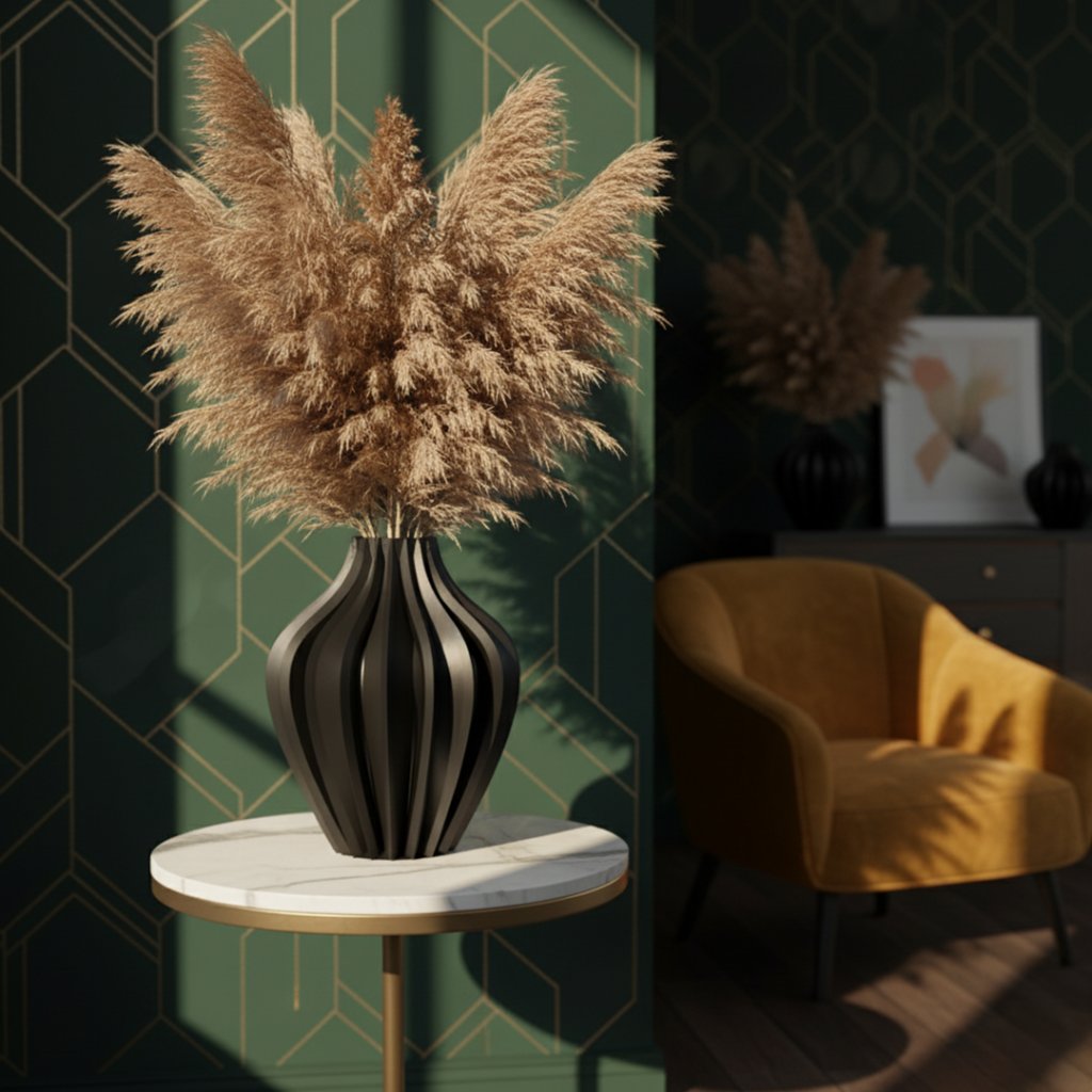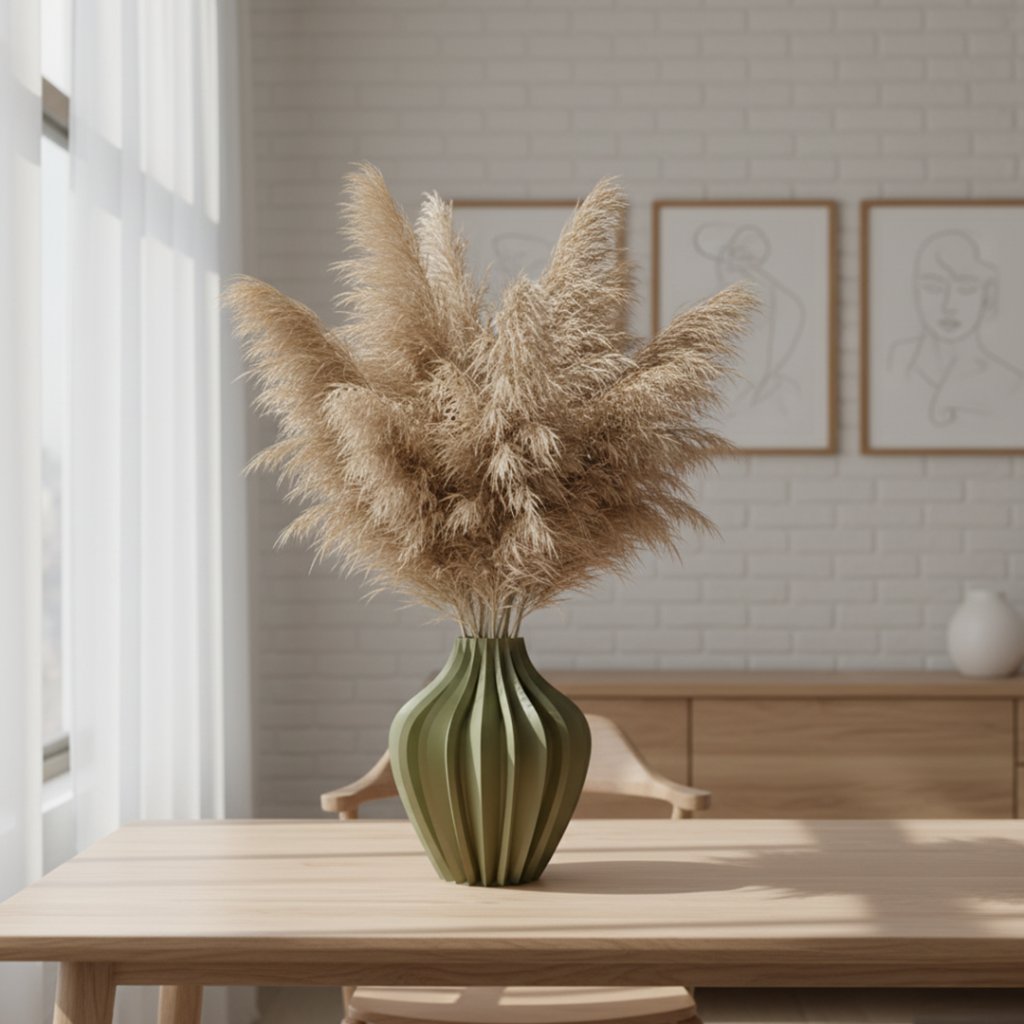 - Váza na suchá aranžmá (pampová tráva, sušené květy)