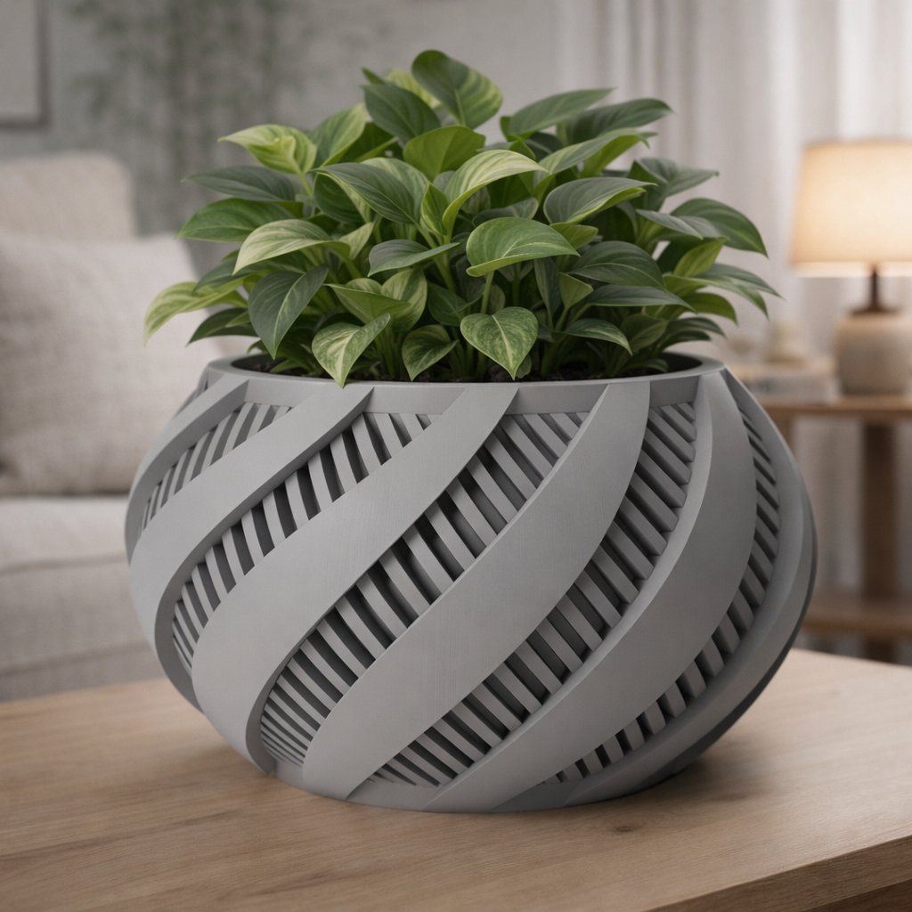 Krato přináší ikonický spirálový 3D reliéf, jenž plynule obtáčí celé tělo květináče. Jemné pruhování mezi pásy vytváří elegantní hru světla a stínu – moderní akcent pro interiér i exteriér.