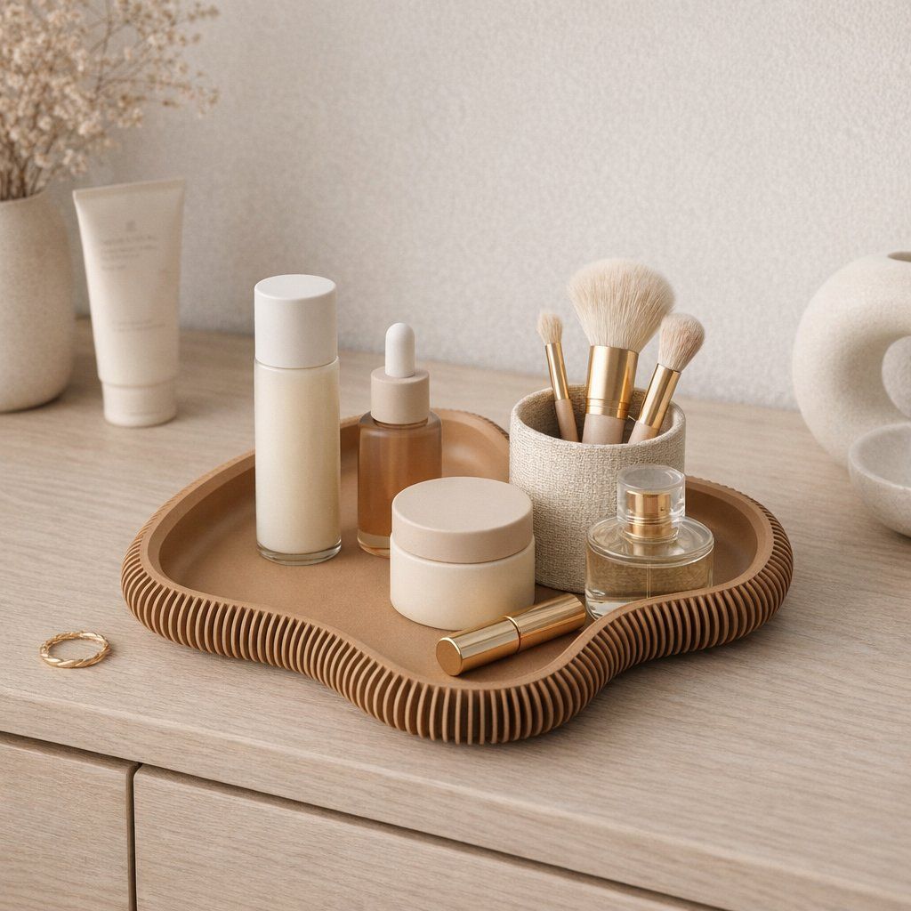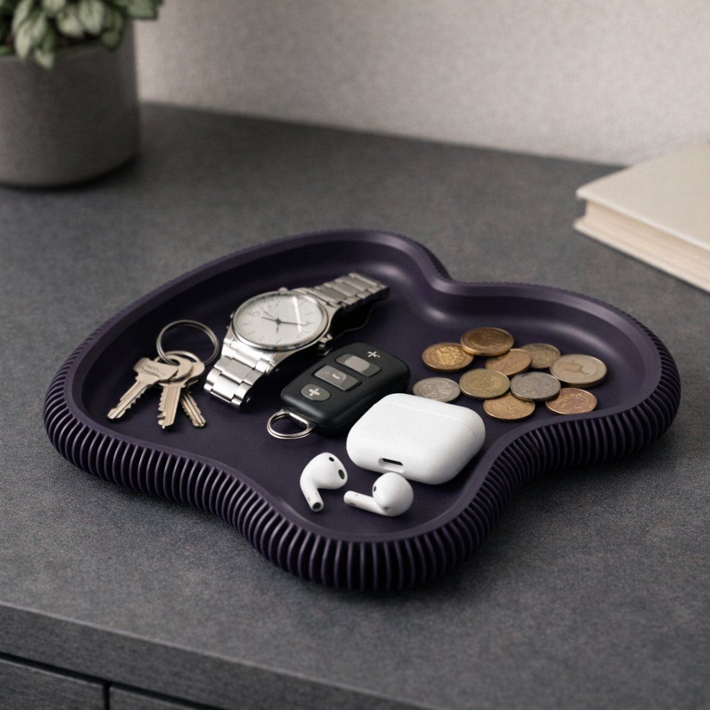 Organizér Auren je designový odkládací podnos s jemně organickým tvarem a výrazně vroubkovaným okrajem, díky kterému nepůsobí jen prakticky, ale i vizuálně výrazně a elegantně. Vznikl pro ty, kteří nechtějí mít na stole, komodě nebo nočním stolku chaos, ale zároveň nechtějí slevit z estetiky.