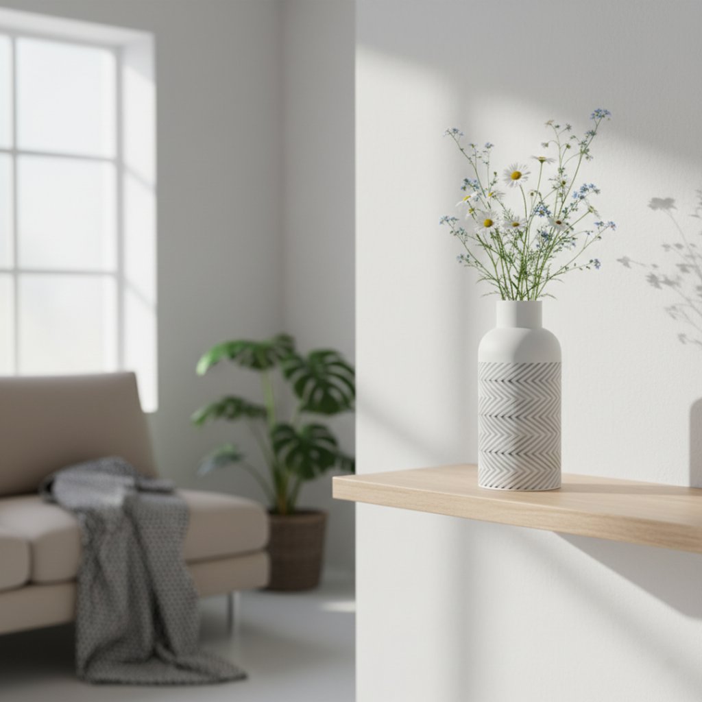 Sember je designová váza s výrazným geometrickým vzorem chevron, který kombinuje rytmus, hloubku a prémiový vizuální efekt. Horní část zůstává minimalistická, zatímco středový pás tvoří 3D struktura, která přitahuje pohled a působí jako dekorativní šperk interiéru.