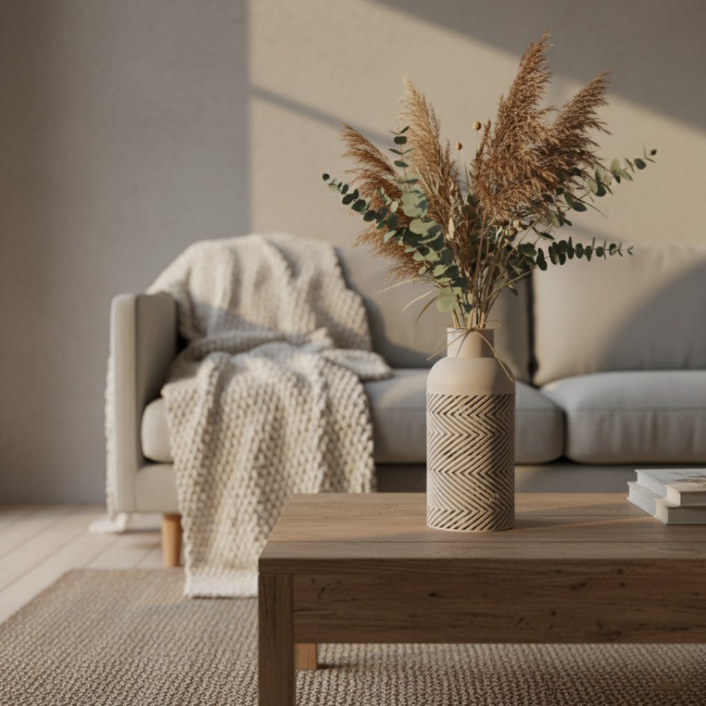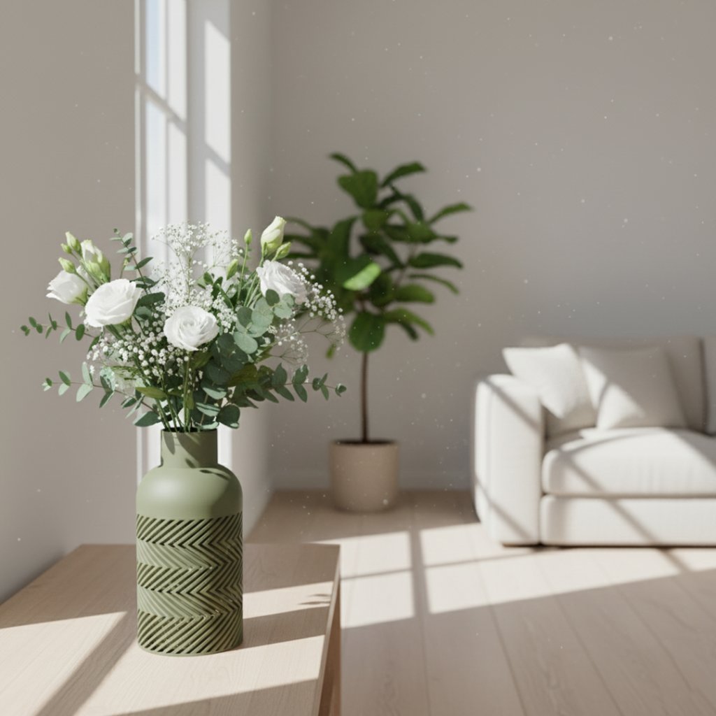 Každý kus vzniká precizním 3D tiskem z PLA (PolyTerra) s matným, jemně texturovaným povrchem. Formáty XL (300 mm) a XXL (340 mm) řadí Sember mezi největší luxusní 3D-tištěné vázy na trhu – tyto rozměry nabízíme exkluzivně jen my.