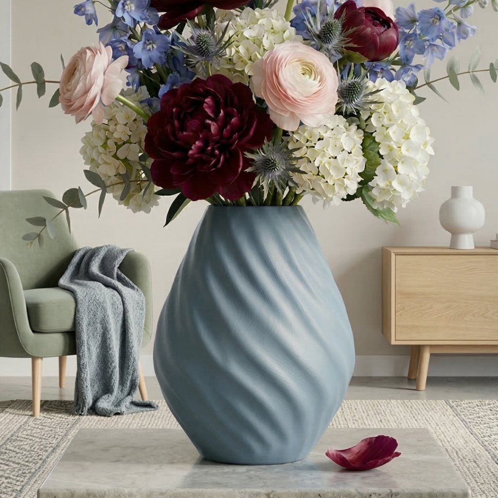 Váza Sorell je designový doplněk s měkkou, organickou siluetou a jemně točeným povrchem, který vytváří elegantní pohyb po celé formě. Působí klidně, harmonicky a přirozeně, díky čemuž se snadno stane výrazným, ale stále vkusným prvkem moderního interiéru.