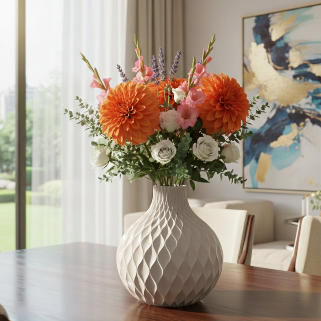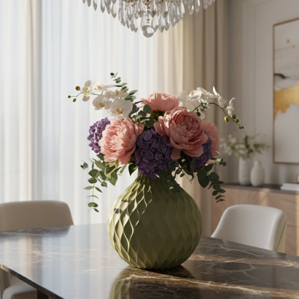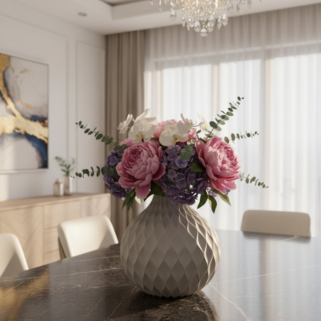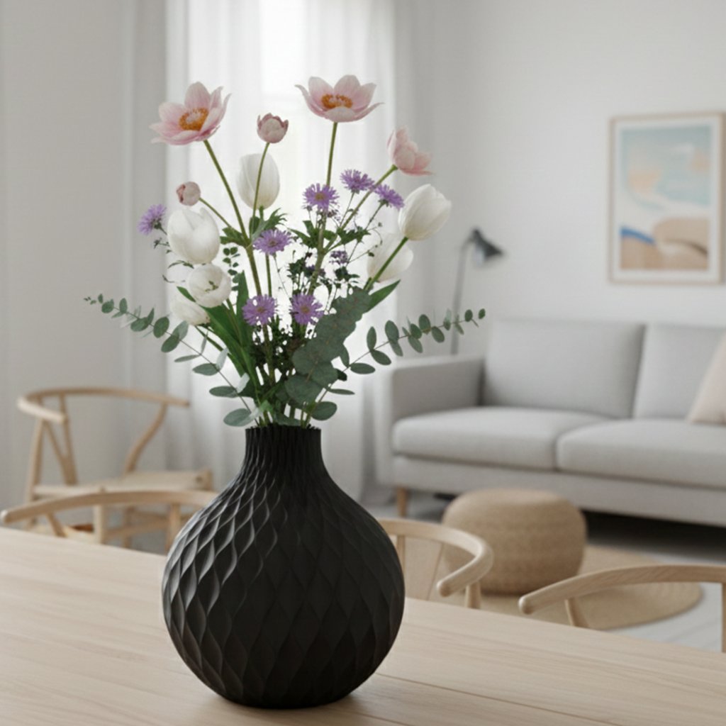 Díky preciznímu 3D tisku a vícevrstvé úpravě je Sylora 100 % vodotěsná. Bez obav ji můžete používat jak na živé květiny s vodou, tak na suché dekorace. Matný povrch z udržitelného PLA bioplastu působí luxusně, ale zároveň jemně a přirozeně – ideální do moderních, skandinávských i minimalistických interiérů.
