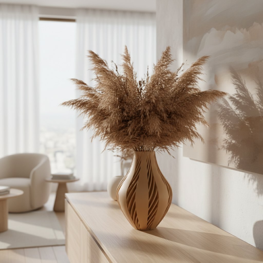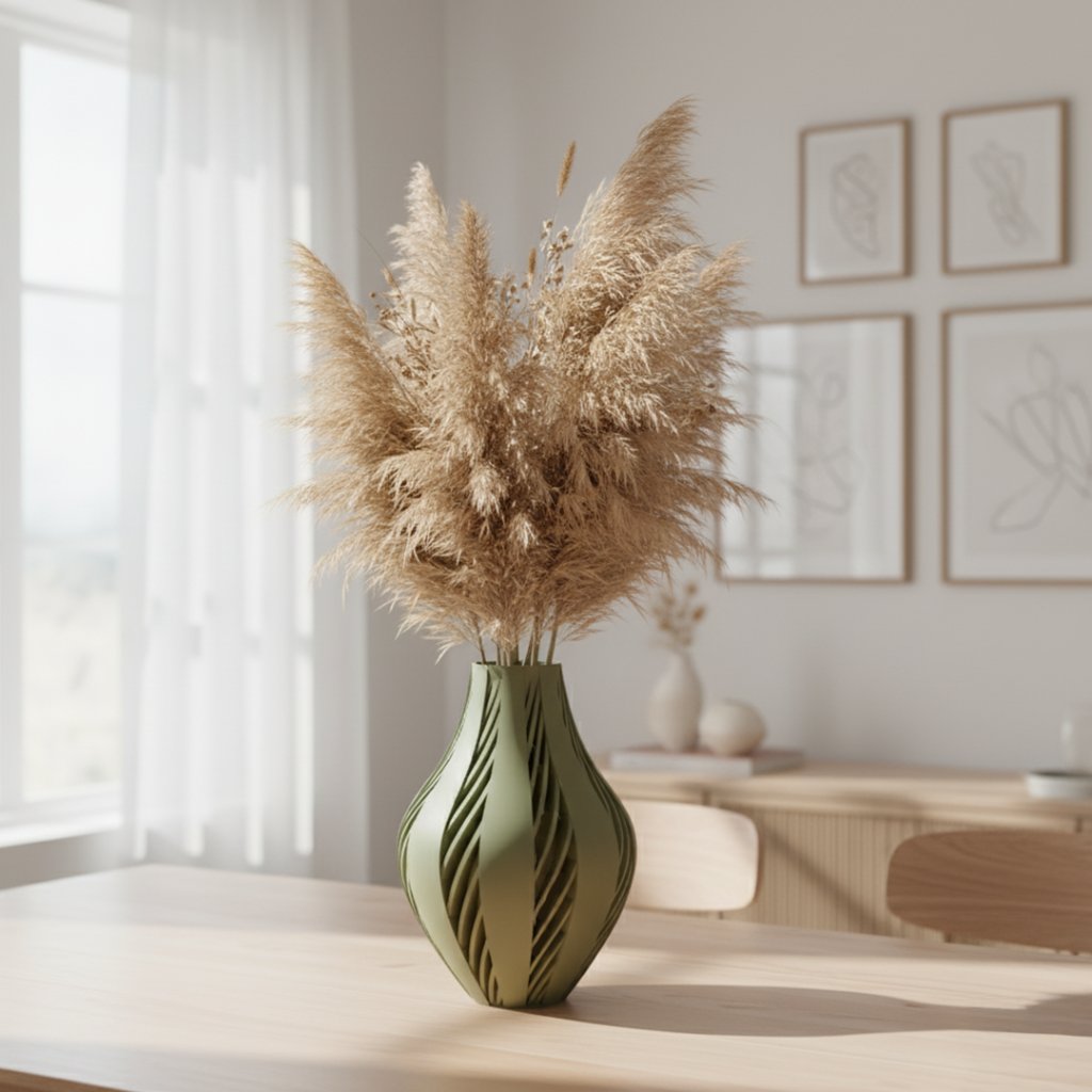 Yori je elegantní designová váza se spirálovým řezem, který vytváří dojem pohybu a proudění. Organický tvar s prolamovanými liniemi jí dodává dynamiku a jemnou hru světla a stínu. Vynikne jako solitér i jako součást moderní kolekce dekorací.