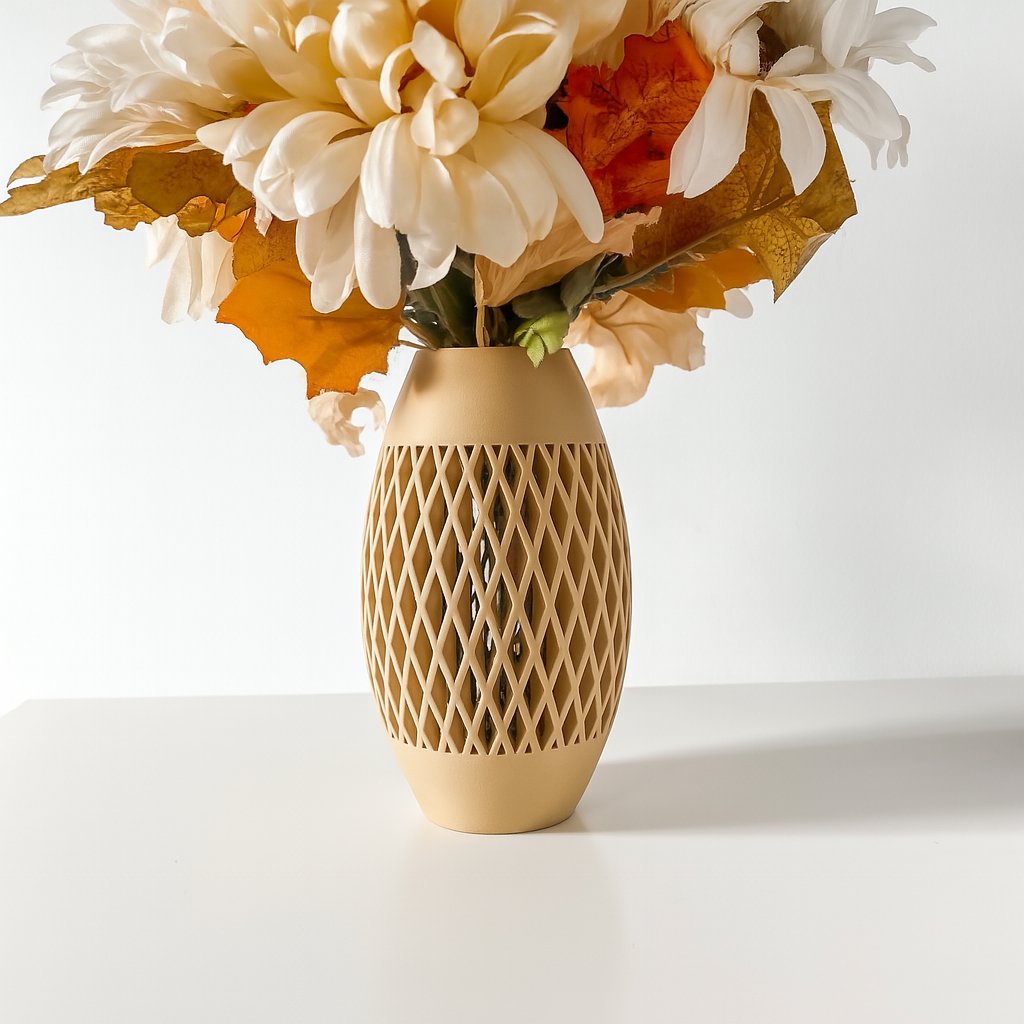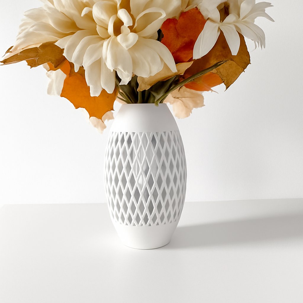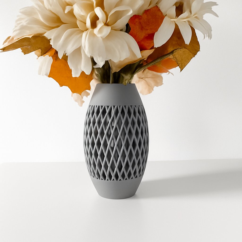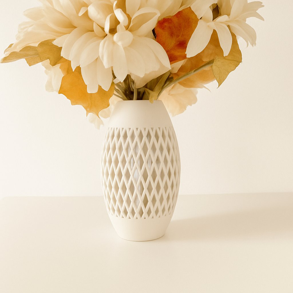 Váza Xero je jedinečný 3D tlačený doplnok, ktorý vyniká svojim otvoreným mriežkovaným dizajnom. Táto váza ponúka vzdušný a moderný vzhľad, ktorý skvele dopĺňa minimalistické a kreatívne interiéry. Ideálna na aranžovanie suchých kvetov alebo ako samostatná dekorácia, ktorá upúta pozornosť v každom priestore.