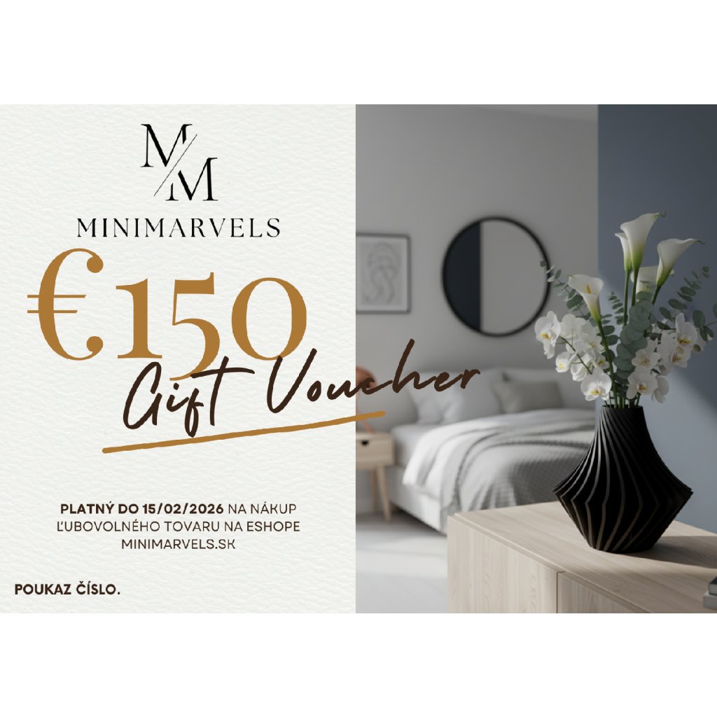 Darčekový poukaz MiniMarvels je ideálnou voľbou, keď chcete darovať krásny dizajnový doplnok, no zároveň ponechať slobodu výberu. Obdarovaný si môže vybrať presne to, čo mu najviac sadne – vázu, kvetináč, lampu alebo iný dizajnový kúsok z našej ponuky.