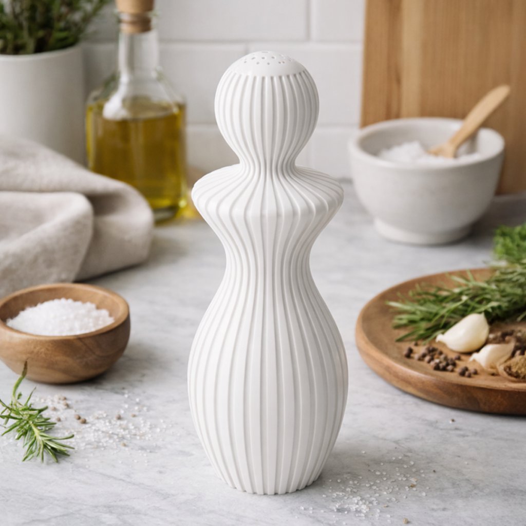 Táto dizajnová solnička je navrhnutá ako sochársky objekt, ktorý prirodzene zapadne do moderného aj minimalistického interiéru. Vďaka výške až 25 cm nepôsobí len ako kuchynská pomôcka, ale aj ako elegantný dekoratívny prvok.