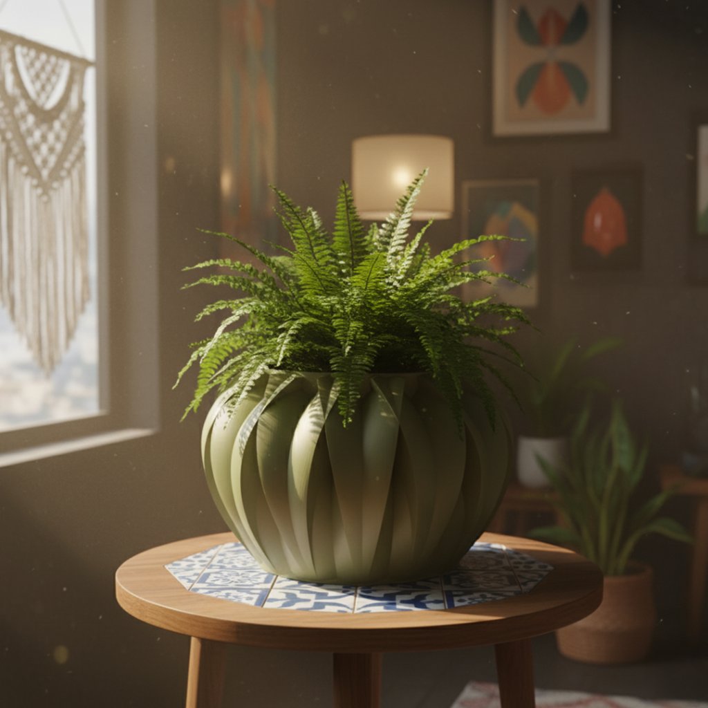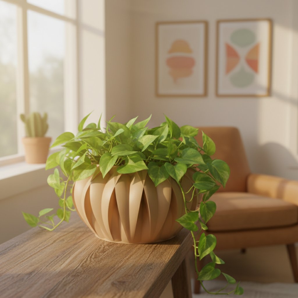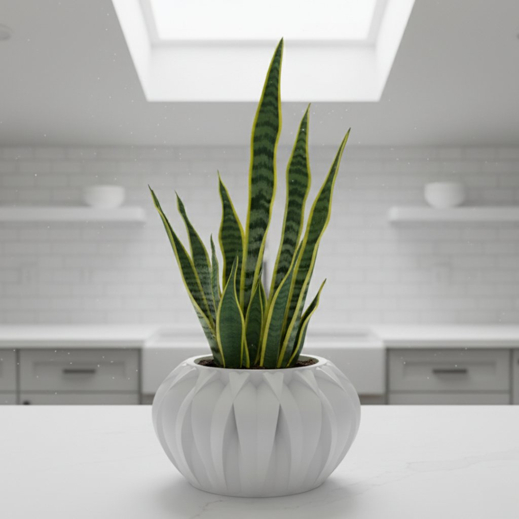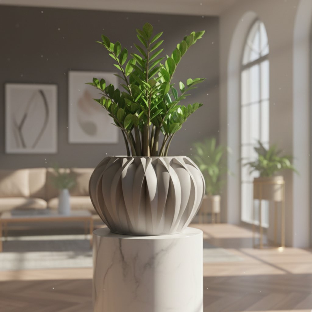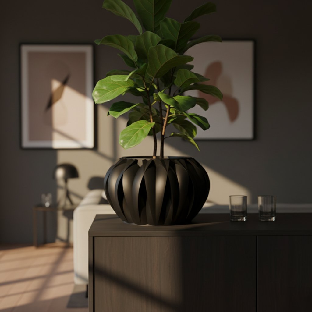 Kvetináč Halden v sebe spája moderný dizajn a jemné organické línie. Jeho tvar pripomínajúci rozkvitnutý kvet s elegantnými 3D lístkami je stvorený pre interiér, ktorý túži po prirodzenej estetike a dizajnovom detaile.