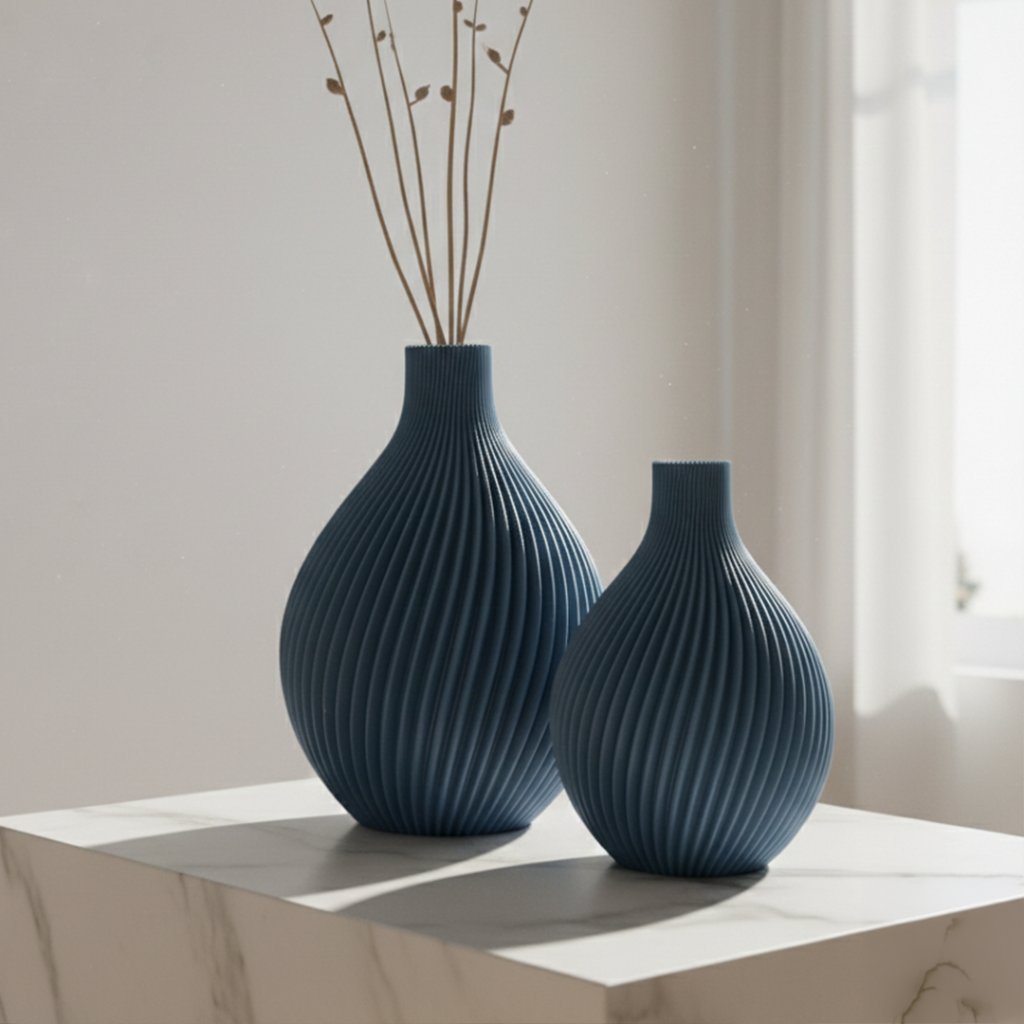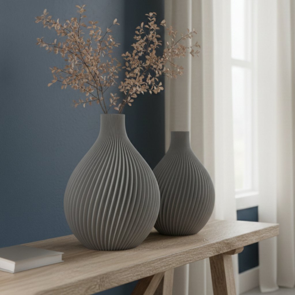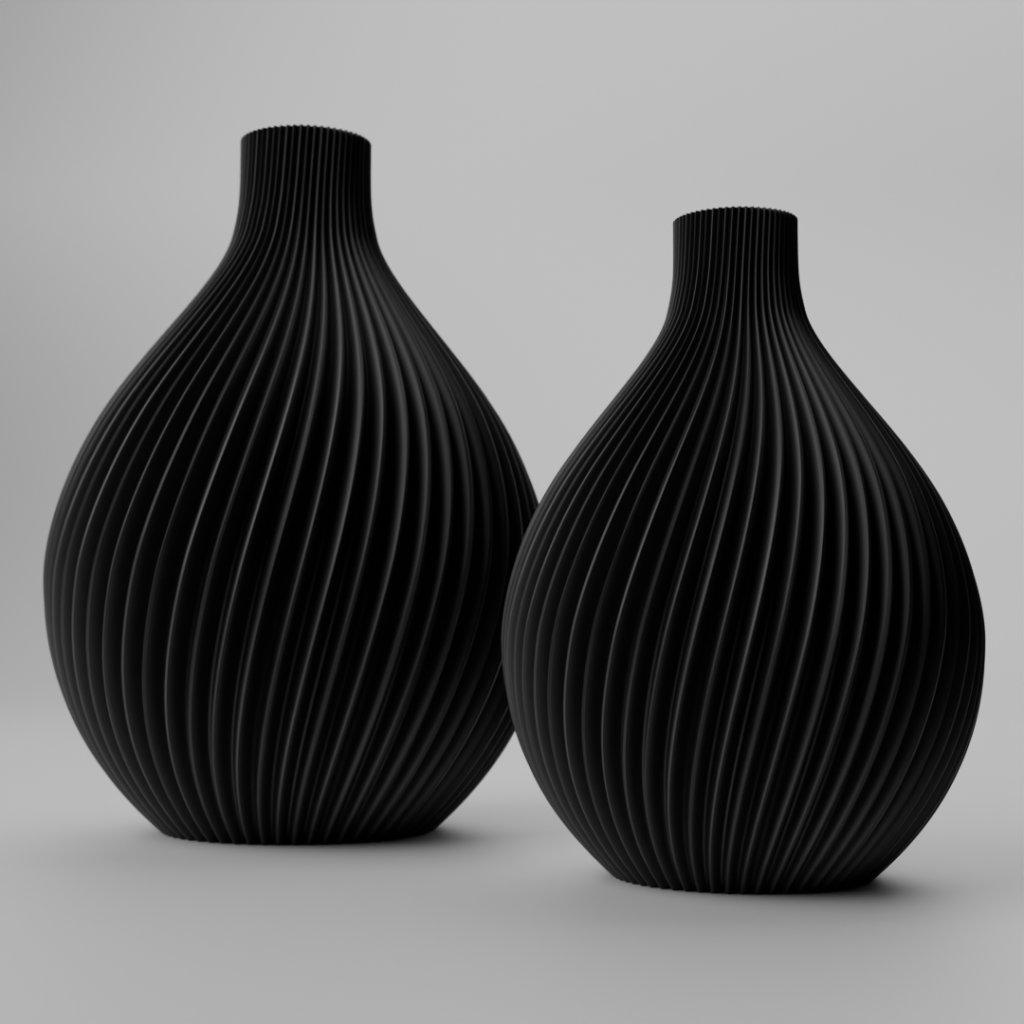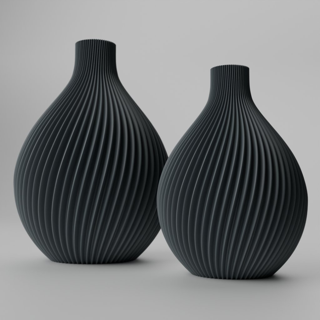 Obsidia je moderná 3D tlačená váza s výraznou siluetou a precíznym rebrovaním, ktoré vytvára hru svetla a tieňa. Vďaka proporciám pôsobí luxusne a sebavedomo aj bez prehnaných dekorácií.