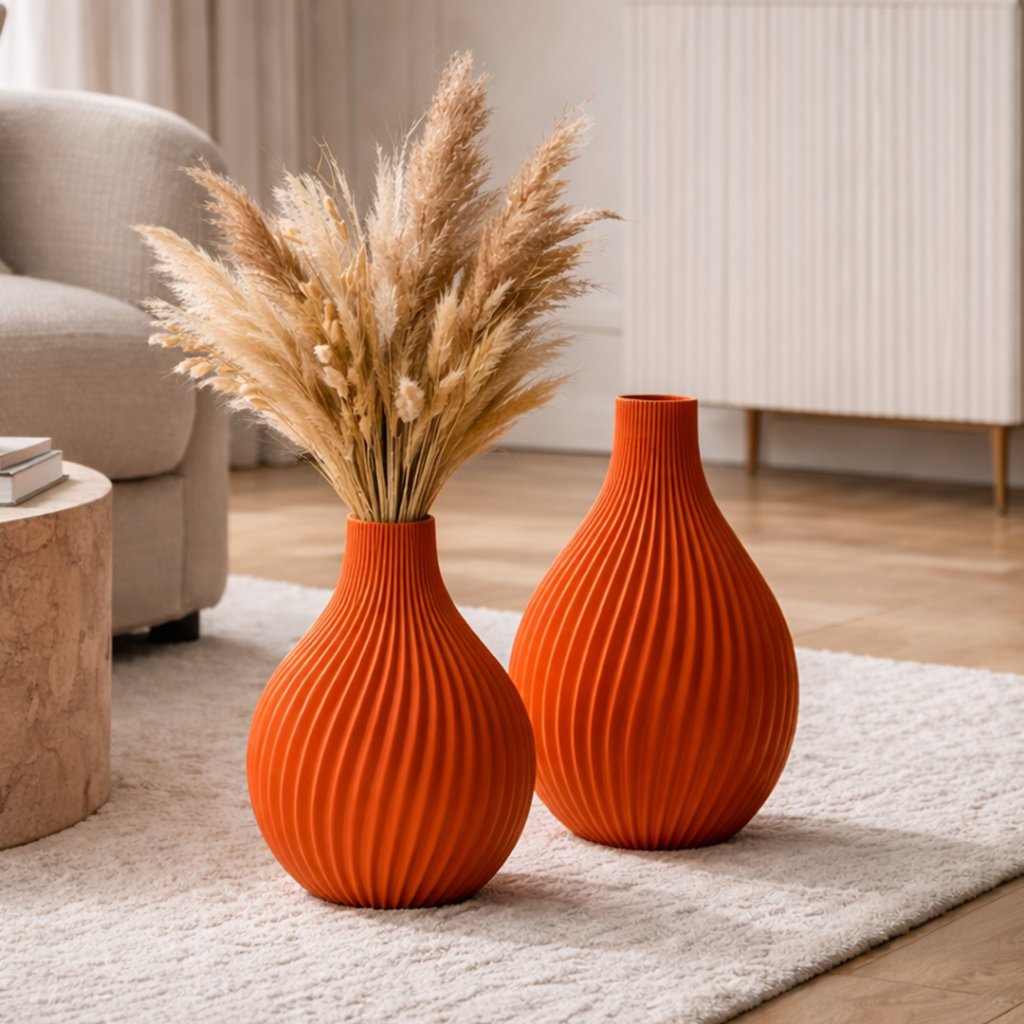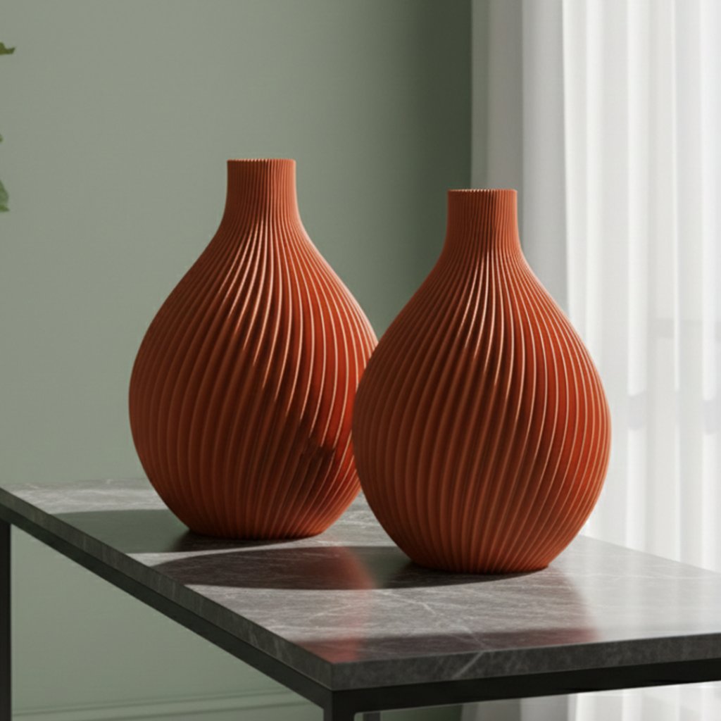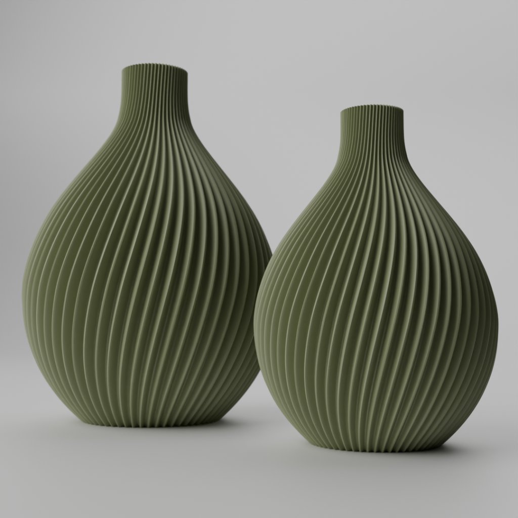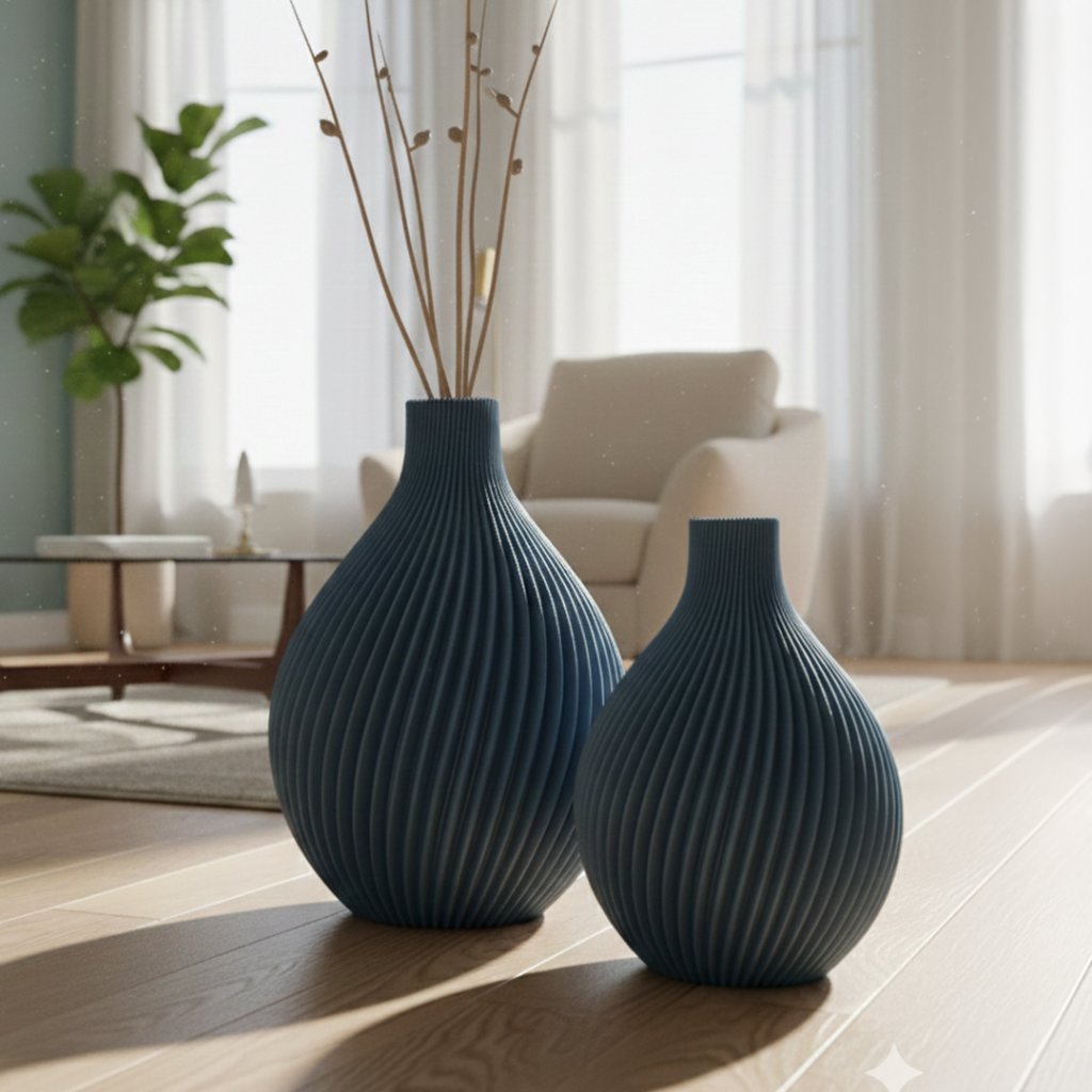 Obsidia je moderná 3D tlačená váza s výraznou siluetou a precíznym rebrovaním, ktoré vytvára hru svetla a tieňa. Vďaka proporciám pôsobí luxusne a sebavedomo aj bez prehnaných dekorácií.