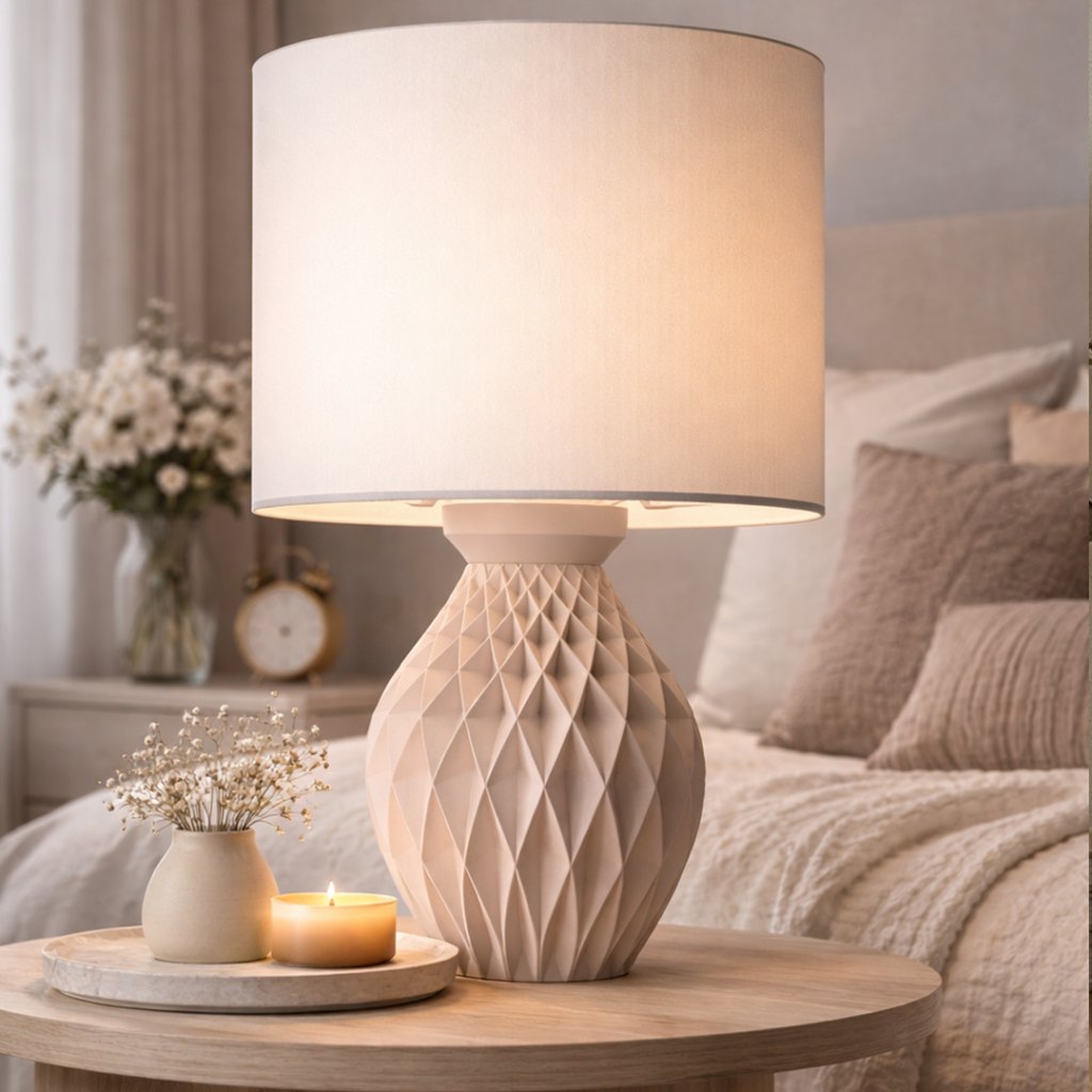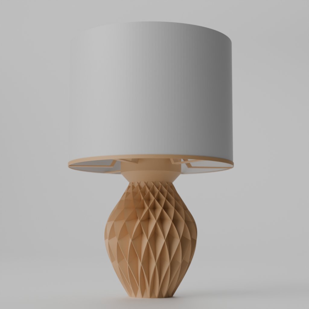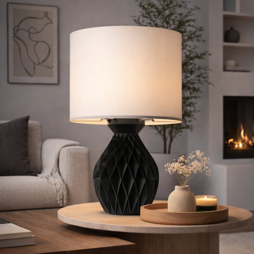 Telo lampy je vyrobené z PLA bioplastu – ekologického materiálu na rastlinnej báze, ktorý je ľahký, pevný a príjemný na dotyk. Matný povrch jemne rozptyľuje svetlo a vytvára pokojnú atmosféru bez ostrých kontrastov.