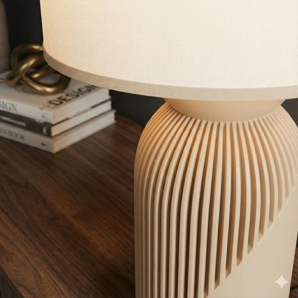 Lampa Yao je stelesnením moderného minimalizmu a precíznej 3D tlače. Jej vertikálne drážkované telo v kombinácii s čistými líniami tienidla vytvára harmonický celok, ktorý pôsobí elegantne a nadčasovo. Yao vnáša do interiéru pokojné, mäkké svetlo a zároveň funguje ako výrazný dizajnový prvok.