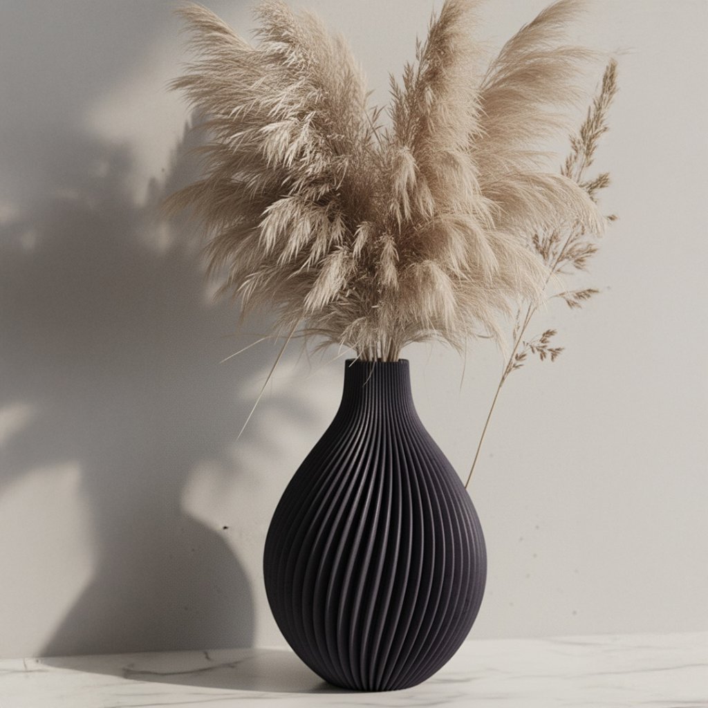 Váza Obsidia predstavuje dokonalé spojenie moderného minimalizmu a vizuálneho luxusu. Jej elegantná, organicky zaoblená silueta pripomína tvar brúseného minerálu – pôsobí harmonicky, pokojne a mimoriadne esteticky. Husté vertikálne vrúbkovanie vytvára jemnú hru tieňov a svetla, vďaka čomu váza pôsobí ako živý umelecký objekt.