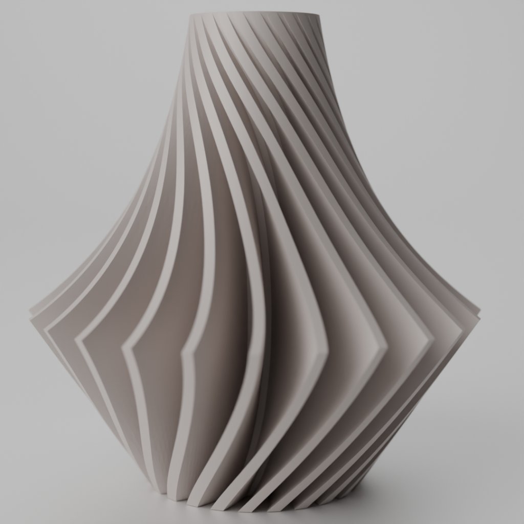 Vamo prináša ikonické špirálové „origami“ rebrá, ktoré sa smerom nadol rozširujú do stabilnej základne. Lomy svetla na ostrých hranách vytvárajú luxusnú hru tieňov a robia z vázy sochársky stredobod interiéru.