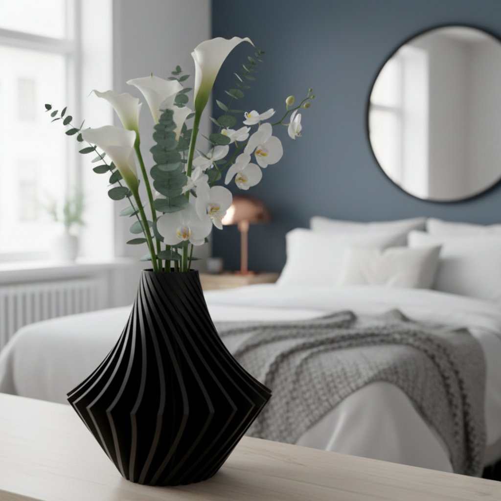 Vyrábame lokálne precíznou 3D tlačou z PLA (PolyTerra) s matným, jemne textúrovaným povrchom a ručnou kontrolou. Formáty XL (300 mm) a XXL (340 mm) radia Vamo medzi najexkluzívnejšie 3D-tlačené vázy na trhu – takto veľké luxusné rozmery v našej kolekcii ponúkame jedine my.