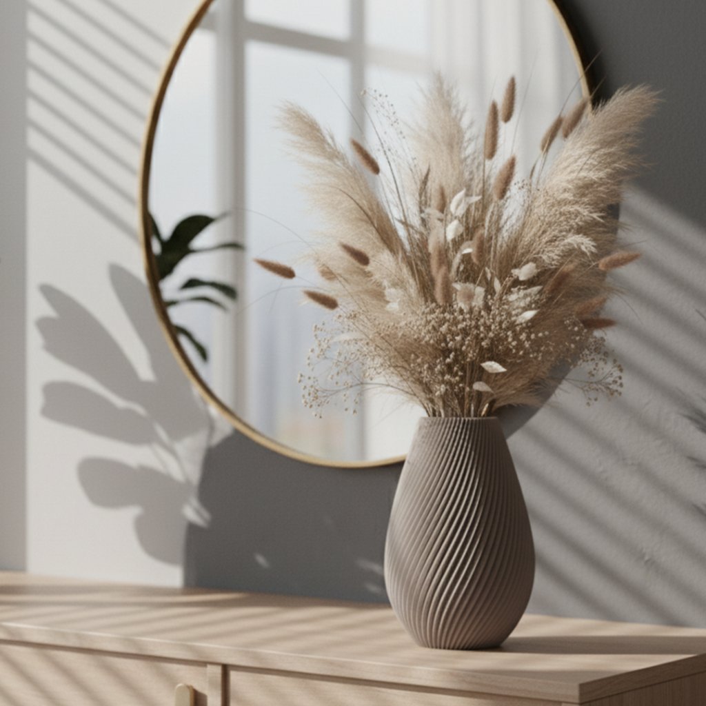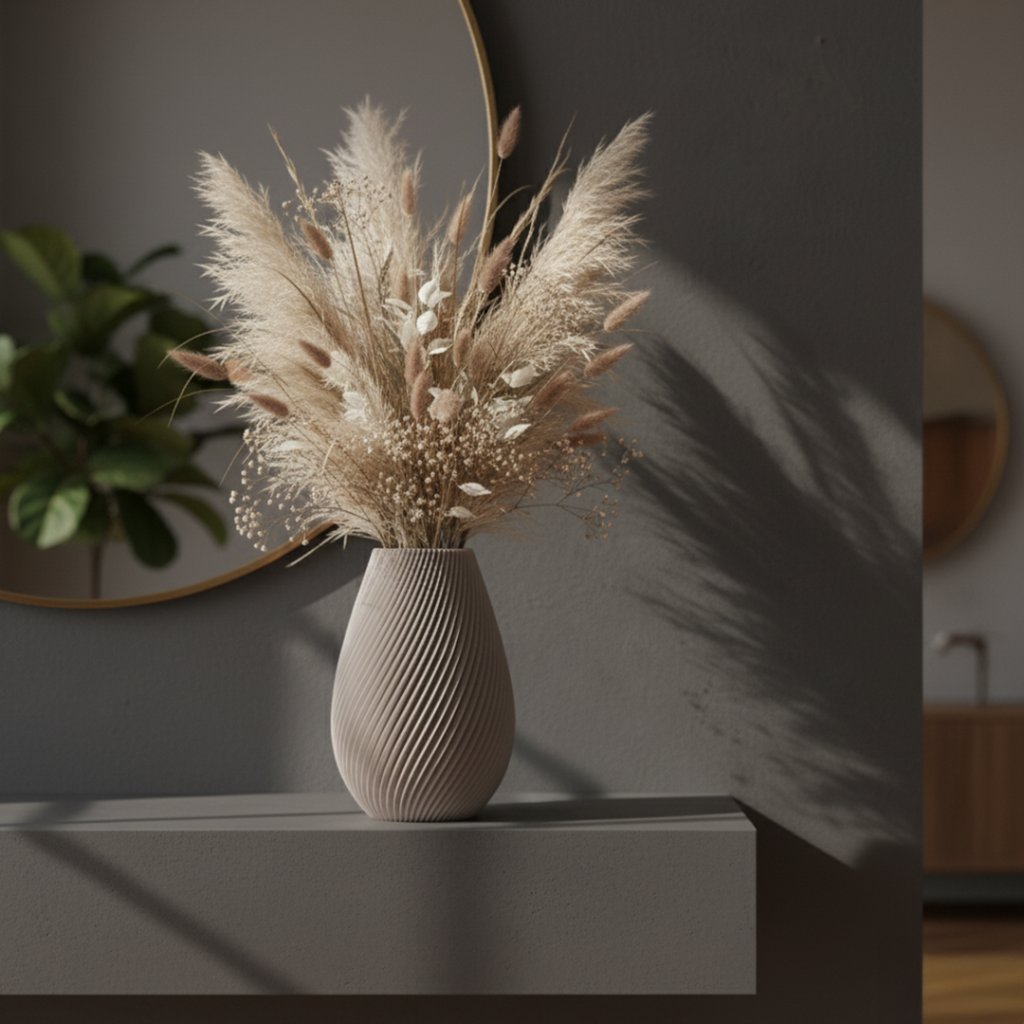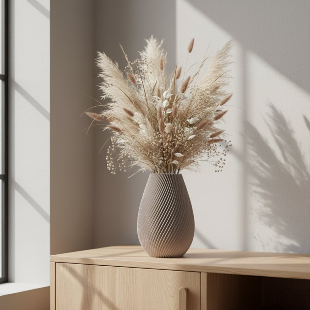 Každý kus je precízne 3D tlačený na Slovensku z ekologického materiálu PolyTerra PLA, ktorý je biologicky rozložiteľný. Váza je ideálna pre milovníkov minimalizmu, severského štýlu a udržateľného dizajnu.